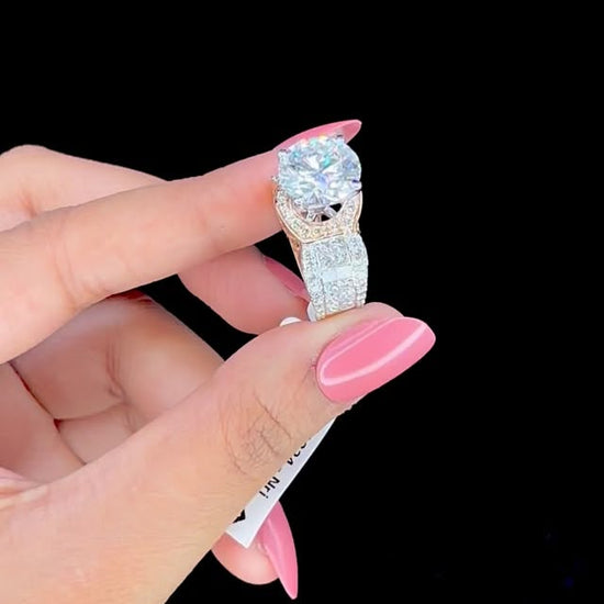 𝗧𝗵𝗶𝘀 𝗺𝗮𝗴𝗻𝗶𝗳𝗶𝗰𝗲𝗻𝘁 𝘀𝘁𝗮𝘁𝗲𝗺𝗲𝗻𝘁 𝗿𝗶𝗻𝗴 𝗶𝘀 𝗲𝘅𝗾𝘂𝗶𝘀𝗶𝘁𝗲𝗹𝘆 𝗰𝗿𝗮𝗳𝘁𝗲𝗱 𝗶𝗻 𝟭𝟰𝗞 𝗿𝗼𝘀𝗲 𝗴𝗼𝗹𝗱, 𝗯𝗹𝗲𝗻𝗱𝗶𝗻𝗴 𝗯𝗼𝗹𝗱 𝗱𝗲𝘀𝗶𝗴𝗻 𝘄𝗶𝘁𝗵 𝘁𝗶𝗺𝗲𝗹𝗲𝘀𝘀 𝗲𝗹𝗲𝗴𝗮𝗻𝗰𝗲. 𝗔𝘁 𝘁𝗵𝗲 𝗰𝗲𝗻𝘁𝗲𝗿 𝘀𝗵𝗶𝗻𝗲𝘀 𝗮 𝗯𝗿𝗲𝗮𝘁𝗵𝘁𝗮𝗸𝗶𝗻𝗴 𝟱.𝟬𝟬 𝗰𝗮𝗿𝗮𝘁 𝗿𝗼𝘂𝗻𝗱 𝘀𝗼𝗹𝗶𝘁𝗮𝗶𝗿𝗲 𝗱𝗶𝗮𝗺𝗼𝗻𝗱, 𝗜𝗚𝗜 𝗰𝗲𝗿𝘁𝗶𝗳𝗶𝗲𝗱, 𝗳𝗲𝗮𝘁𝘂𝗿𝗶𝗻𝗴 𝗛 𝗰𝗼𝗹𝗼𝗿 𝗮𝗻𝗱 𝗩𝗦𝟮 𝗰𝗹𝗮𝗿𝗶𝘁𝘆, 𝗰𝗲𝗹𝗲𝗯𝗿𝗮𝘁𝗲𝗱 𝗳𝗼𝗿 𝗶𝘁𝘀 𝗲𝘅𝗰𝗲𝗽𝘁𝗶𝗼𝗻𝗮𝗹 𝗯𝗿𝗶𝗹𝗹𝗶𝗮𝗻𝗰𝗲 𝗮𝗻𝗱 𝗰𝗼𝗺𝗺𝗮𝗻𝗱𝗶𝗻𝗴 𝗽𝗿𝗲𝘀𝗲𝗻𝗰𝗲. 𝗘𝗻𝗰𝗶𝗿𝗰𝗹𝗶𝗻𝗴 𝘁𝗵𝗲 𝘀𝗼𝗹𝗶𝘁𝗮𝗶𝗿𝗲 𝗶𝘀 𝗮 𝗿𝗮𝗱𝗶𝗮𝗻𝘁 𝗵𝗮𝗹𝗼 𝗼𝗳 𝗿𝗼𝘂𝗻𝗱 𝗯𝗿𝗶𝗹𝗹𝗶𝗮𝗻𝘁 𝗱𝗶𝗮𝗺𝗼𝗻𝗱𝘀 𝘁𝗼𝘁𝗮𝗹𝗶𝗻𝗴 𝟬.𝟳𝟰 𝗰𝗮𝗿𝗮𝘁𝘀, 𝗶𝗻 𝗛 𝗰𝗼𝗹𝗼𝗿 𝘄𝗶𝘁𝗵 𝗩𝗦 𝗰𝗹𝗮𝗿𝗶𝘁𝘆, 𝗲𝗻𝗵𝗮𝗻𝗰𝗶𝗻𝗴 𝘁𝗵𝗲 𝗰𝗲𝗻𝘁𝗲𝗿 𝘀𝘁𝗼𝗻𝗲’𝘀 𝗳𝗶𝗿𝗲 𝗮𝗻𝗱 𝗱𝗲𝗽𝘁𝗵. 𝗧𝗵𝗲 𝗱𝗲𝘀𝗶𝗴𝗻 𝗶𝘀 𝗳𝘂𝗿𝘁𝗵𝗲𝗿 𝗲𝗹𝗲𝘃𝗮𝘁𝗲𝗱 𝗯𝘆 𝘀𝘁𝗿𝗶𝗸𝗶𝗻𝗴 𝗽𝗿𝗶𝗻𝗰𝗲𝘀𝘀 𝗰𝘂𝘁 𝗱𝗶𝗮𝗺𝗼𝗻𝗱𝘀 𝘀𝗲𝘁 𝗮𝗹𝗼𝗻𝗴 𝗯𝗼𝘁𝗵 𝘀𝗶𝗱𝗲𝘀 𝗼𝗳 𝘁𝗵𝗲 𝗯𝗮𝗻𝗱, 𝘄𝗲𝗶𝗴𝗵𝗶𝗻𝗴 𝗮 𝘁𝗼𝘁𝗮𝗹 𝗼𝗳 𝟭.𝟱𝟱 𝗰𝗮𝗿𝗮𝘁𝘀, 𝗶𝗻 𝘀𝘂𝗽𝗲𝗿𝗶𝗼𝗿 𝗙𝗚 𝗰𝗼𝗹𝗼𝗿 𝗮𝗻𝗱 𝗩𝗦 𝗰𝗹𝗮𝗿𝗶𝘁𝘆, 𝗮𝗱𝗱𝗶𝗻𝗴 𝘀𝘁𝗿𝘂𝗰𝘁𝘂𝗿𝗲, 𝘀𝗽𝗮𝗿𝗸𝗹𝗲, 𝗮𝗻𝗱 𝗴𝗿𝗮𝗻𝗱𝗲𝘂𝗿 𝗳𝗿𝗼𝗺 𝗲𝘃𝗲𝗿𝘆 𝗮𝗻𝗴𝗹𝗲. 𝗪𝗶𝘁𝗵 𝗮 𝗴𝗿𝗼𝘀𝘀 𝗴𝗼𝗹𝗱 𝘄𝗲𝗶𝗴𝗵𝘁 𝗼𝗳 𝟳.𝟱𝟯 𝗴𝗿𝗮𝗺𝘀 𝗮𝗻𝗱 𝗮 𝗻𝗲𝘁 𝗴𝗼𝗹𝗱 𝘄𝗲𝗶𝗴𝗵𝘁 𝗼𝗳 𝟲.𝟬𝟮𝟮 𝗴𝗿𝗮𝗺𝘀, 𝘁𝗵𝗶𝘀 𝗿𝗶𝗻𝗴 𝗿𝗲𝗳𝗹𝗲𝗰𝘁𝘀 𝗺𝗮𝘀𝘁𝗲𝗿 𝗰𝗿𝗮𝗳𝘁𝘀𝗺𝗮𝗻𝘀𝗵𝗶𝗽 𝗮𝗻𝗱 𝗹𝘂𝘅𝘂𝗿𝗶𝗼𝘂𝘀 𝘄𝗲𝗶𝗴𝗵𝘁—𝗽𝗲𝗿𝗳𝗲𝗰𝘁 𝗳𝗼𝗿 𝘁𝗵𝗼𝘀𝗲 𝘄𝗵𝗼 𝗱𝗲𝘀𝗶𝗿𝗲 𝗮 𝗯𝗼𝗹𝗱, 𝘂𝗻𝗳𝗼𝗿𝗴𝗲𝘁𝘁𝗮𝗯𝗹𝗲 𝘀𝘆𝗺𝗯𝗼𝗹 𝗼𝗳 𝗹𝗼𝘃𝗲, 𝗽𝗼𝘄𝗲𝗿, 𝗮𝗻𝗱 𝗽𝗿𝗲𝘀𝘁𝗶𝗴𝗲. ✨ 𝗔 𝗺𝗮𝘀𝘁𝗲𝗿𝗽𝗶𝗲𝗰𝗲 𝗱𝗲𝘀𝗶𝗴𝗻𝗲𝗱 𝘁𝗼 𝘁𝘂𝗿𝗻 𝗲𝘃𝗲𝗿𝘆 𝗺𝗼𝗺𝗲𝗻𝘁 𝗶𝗻𝘁𝗼 𝗮 𝗹𝗲𝗴𝗮𝗰𝘆.