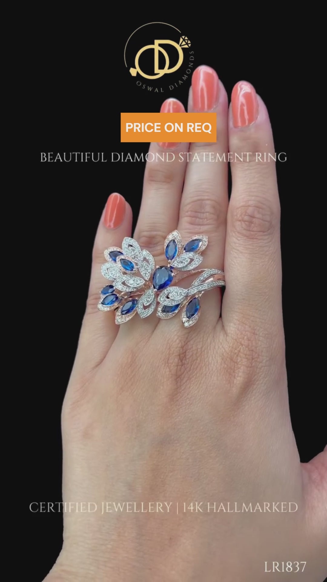 𝗧𝗵𝗶𝘀 𝗲𝗻𝗰𝗵𝗮𝗻𝘁𝗶𝗻𝗴 𝘀𝘁𝗮𝘁𝗲𝗺𝗲𝗻𝘁 𝗿𝗶𝗻𝗴 𝗶𝘀 𝗲𝘅𝗾𝘂𝗶𝘀𝗶𝘁𝗲𝗹𝘆 𝗰𝗿𝗮𝗳𝘁𝗲𝗱 𝗶𝗻 𝟭𝟰𝗞 𝗴𝗼𝗹𝗱, 𝗱𝗲𝘀𝗶𝗴𝗻𝗲𝗱 𝘄𝗶𝘁𝗵 𝗮𝗻 𝗮𝗿𝘁𝗶𝘀𝘁𝗶𝗰 𝗹𝗲𝗮𝗳-𝗶𝗻𝘀𝗽𝗶𝗿𝗲𝗱 𝘀𝗶𝗹𝗵𝗼𝘂𝗲𝘁𝘁𝗲 𝘁𝗵𝗮𝘁 𝗲𝘅𝘂𝗱𝗲𝘀 𝗲𝗹𝗲𝗴𝗮𝗻𝗰𝗲 𝗮𝗻𝗱 𝗶𝗻𝗱𝗶𝘃𝗶𝗱𝘂𝗮𝗹𝗶𝘁𝘆. 𝗦𝗵𝗼𝘄𝗰𝗮𝘀𝗶𝗻𝗴 𝗮 𝘀𝘁𝗿𝗶𝗸𝗶𝗻𝗴 𝗮𝗿𝗿𝗮𝗻𝗴𝗲𝗺𝗲𝗻𝘁 𝗼𝗳 𝗱𝗲𝗲𝗽 𝗯𝗹𝘂𝗲 𝗰𝗼𝗹𝗼𝗿 𝘀𝘁𝗼𝗻𝗲𝘀 𝘁𝗼𝘁𝗮𝗹𝗶𝗻𝗴 𝟮.𝟵𝟴 𝗰𝗮𝗿𝗮𝘁𝘀, 𝘁𝗵𝗲 𝗱𝗲𝘀𝗶𝗴𝗻 𝗰𝗮𝗽𝘁𝘂𝗿𝗲𝘀 𝗳𝗹𝘂𝗶𝗱 𝗺𝗼𝘃𝗲𝗺𝗲𝗻𝘁 𝗮𝗻𝗱 𝗻𝗮𝘁𝘂𝗿𝗮𝗹 𝗯𝗲𝗮𝘂𝘁𝘆 𝘄𝗶𝘁𝗵 𝗲𝘃𝗲𝗿𝘆 𝗱𝗲𝘁𝗮𝗶𝗹.