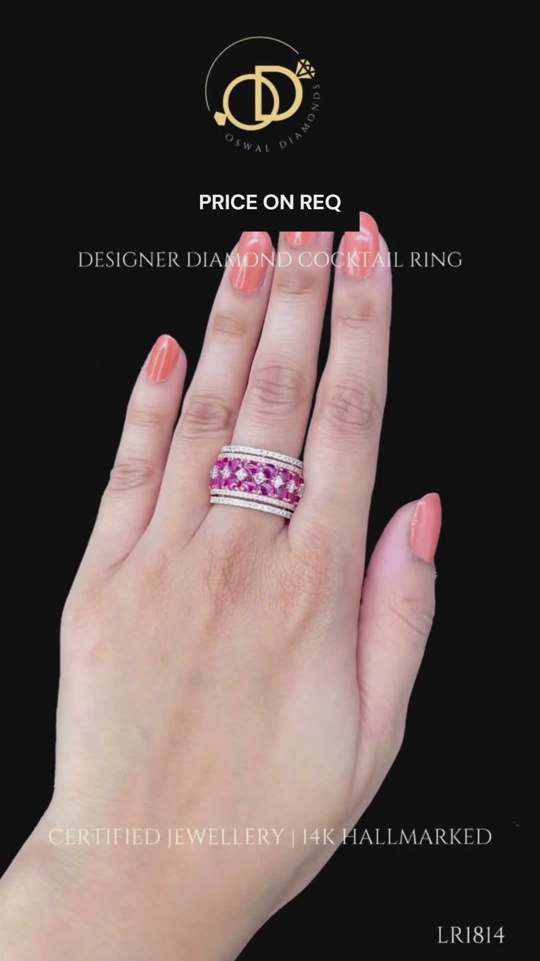 𝗧𝗵𝗶𝘀 𝗹𝘂𝘅𝘂𝗿𝗶𝗼𝘂𝘀 𝗯𝗮𝗻𝗱-𝘀𝘁𝘆𝗹𝗲 𝗿𝗶𝗻𝗴 𝗶𝘀 𝗲𝘅𝗽𝗲𝗿𝘁𝗹𝘆 𝗰𝗿𝗮𝗳𝘁𝗲𝗱 𝗶𝗻 𝟭𝟰𝗞 𝗿𝗼𝘀𝗲 𝗴𝗼𝗹𝗱, 𝗰𝗼𝗺𝗯𝗶𝗻𝗶𝗻𝗴 𝗰𝗼𝗻𝘁𝗲𝗺𝗽𝗼𝗿𝗮𝗿𝘆 𝗲𝗹𝗲𝗴𝗮𝗻𝗰𝗲 𝘄𝗶𝘁𝗵 𝘃𝗶𝗯𝗿𝗮𝗻𝘁 𝗰𝗼𝗹𝗼𝗿. 𝗧𝗵𝗲 𝗰𝗲𝗻𝘁𝗲𝗿 𝗼𝗳 𝘁𝗵𝗲 𝗿𝗶𝗻𝗴 𝗶𝘀 𝗮𝗱𝗼𝗿𝗻𝗲𝗱 𝘄𝗶𝘁𝗵 𝗿𝗶𝗰𝗵 𝗽𝗶𝗻𝗸 𝗰𝗼𝗹𝗼𝗿 𝘀𝘁𝗼𝗻𝗲𝘀 𝘁𝗼𝘁𝗮𝗹𝗶𝗻𝗴 𝟮.𝟴𝟲 𝗰𝗮𝗿𝗮𝘁𝘀, 𝗮𝗿𝗿𝗮𝗻𝗴𝗲𝗱 𝗶𝗻 𝗮 𝗯𝗼𝗹𝗱, 𝘀𝘆𝗺𝗺𝗲𝘁𝗿𝗶𝗰𝗮𝗹 𝗱𝗲𝘀𝗶𝗴𝗻 𝘁𝗵𝗮𝘁 𝗰𝗿𝗲𝗮𝘁𝗲𝘀 𝗮 𝘀𝘁𝗿𝗶𝗸𝗶𝗻𝗴 𝘃𝗶𝘀𝘂𝗮𝗹 𝗶𝗺𝗽𝗮𝗰𝘁. 𝗙𝗿𝗮𝗺𝗶𝗻𝗴 𝘁𝗵𝗲 𝗰𝗲𝗻𝘁𝗲𝗿𝗽𝗶𝗲𝗰𝗲 𝗮𝗿𝗲 𝗳𝗶𝗻𝗲𝗹𝘆 𝘀𝗲𝘁 𝗿𝗼𝘂𝗻𝗱 𝗱𝗶𝗮𝗺𝗼𝗻𝗱𝘀 𝘄𝗲𝗶𝗴𝗵𝗶𝗻𝗴 𝟬.𝟴𝟵 𝗰𝗮𝗿𝗮𝘁𝘀, 𝗳𝗲𝗮𝘁𝘂𝗿𝗶𝗻𝗴 𝗛𝗜 𝗰𝗼𝗹𝗼𝗿 𝗮𝗻𝗱 𝗩𝗦 𝗰𝗹𝗮𝗿𝗶𝘁𝘆, 𝗮𝗱𝗱𝗶𝗻𝗴 𝗿𝗲𝗳𝗶𝗻𝗲𝗱 𝗯𝗿𝗶𝗹𝗹𝗶𝗮𝗻𝗰𝗲 𝗮𝗻𝗱 𝗰𝗼𝗻𝘁𝗿𝗮𝘀𝘁 𝘁𝗼 𝘁𝗵𝗲 𝘃𝗶𝘃𝗶𝗱 𝘀𝘁𝗼𝗻𝗲𝘀. 𝗧𝗵𝗲 𝘀𝘁𝗿𝘂𝗰𝘁𝘂𝗿𝗲𝗱, 𝗹𝗮𝘆𝗲𝗿𝗲𝗱 𝘀𝗲𝘁𝘁𝗶𝗻𝗴 𝗴𝗶𝘃𝗲𝘀 𝘁𝗵𝗲 𝗿𝗶𝗻𝗴 𝗮 𝗺𝗼𝗱𝗲𝗿𝗻 𝘆𝗲𝘁 𝘁𝗶𝗺𝗲𝗹𝗲𝘀𝘀 𝗮𝗽𝗽𝗲𝗮𝗹, 𝗺𝗮𝗸𝗶𝗻𝗴 𝗶𝘁 𝗽𝗲𝗿𝗳𝗲𝗰𝘁 𝗳𝗼𝗿 𝗯𝗼𝘁𝗵 𝗲𝘃𝗲𝗿𝘆𝗱𝗮𝘆 𝗹𝘂𝘅𝘂𝗿𝘆 𝗮𝗻𝗱 𝘀𝗽𝗲𝗰𝗶𝗮𝗹 𝗼𝗰𝗰𝗮𝘀𝗶𝗼𝗻𝘀. 𝗪𝗶𝘁𝗵 𝗮 𝗴𝗿𝗼𝘀𝘀 𝗴𝗼𝗹𝗱 𝘄𝗲𝗶𝗴𝗵𝘁 𝗼𝗳 𝟲.𝟳𝟲𝟬 𝗴𝗿𝗮𝗺𝘀 𝗮𝗻𝗱 𝗮 𝗻𝗲𝘁 𝗴𝗼𝗹𝗱 𝘄𝗲𝗶𝗴𝗵𝘁 𝗼𝗳 𝟲.𝟬𝟭𝟬 𝗴𝗿𝗮𝗺𝘀, 𝘁𝗵𝗶𝘀 𝗿𝗶𝗻𝗴 𝗼𝗳𝗳𝗲𝗿𝘀 𝗮 𝗰𝗼𝗺𝗳𝗼𝗿𝘁𝗮𝗯𝗹𝗲 𝘆𝗲𝘁 𝘀𝘂𝗯𝘀𝘁𝗮𝗻𝘁𝗶𝗮𝗹 𝗳𝗲𝗲𝗹. 𝗜𝘁 𝗶𝘀 𝗮𝘃𝗮𝗶𝗹𝗮𝗯𝗹𝗲 𝗳𝗼𝗿 𝗰𝘂𝘀𝘁𝗼𝗺𝗶𝘇𝗮𝘁𝗶𝗼𝗻 𝗶𝗻 𝘄𝗵𝗶𝘁𝗲 𝗴𝗼𝗹𝗱 𝗮𝗻𝗱 𝘆𝗲𝗹𝗹𝗼𝘄 𝗴𝗼𝗹𝗱, 𝗮𝗹𝗹𝗼𝘄𝗶𝗻𝗴 𝘆𝗼𝘂 𝘁𝗼 𝘁𝗮𝗶𝗹𝗼𝗿 𝘁𝗵𝗲 𝗽𝗶𝗲𝗰𝗲 𝘁𝗼 𝘆𝗼𝘂𝗿 𝗽𝗲𝗿𝘀𝗼𝗻𝗮𝗹 𝘀𝘁𝘆𝗹𝗲. ✨ 𝗔 𝘀𝗼𝗽𝗵𝗶𝘀𝘁𝗶𝗰𝗮𝘁𝗲𝗱 𝘀𝘁𝗮𝘁𝗲𝗺𝗲𝗻𝘁 𝗿𝗶𝗻𝗴 𝗱𝗲𝘀𝗶𝗴𝗻𝗲𝗱 𝘁𝗼 𝘀𝘁𝗮𝗻𝗱 𝗼𝘂𝘁 𝗲𝗳𝗳𝗼𝗿𝘁𝗹𝗲𝘀𝘀𝗹𝘆.