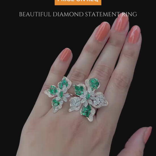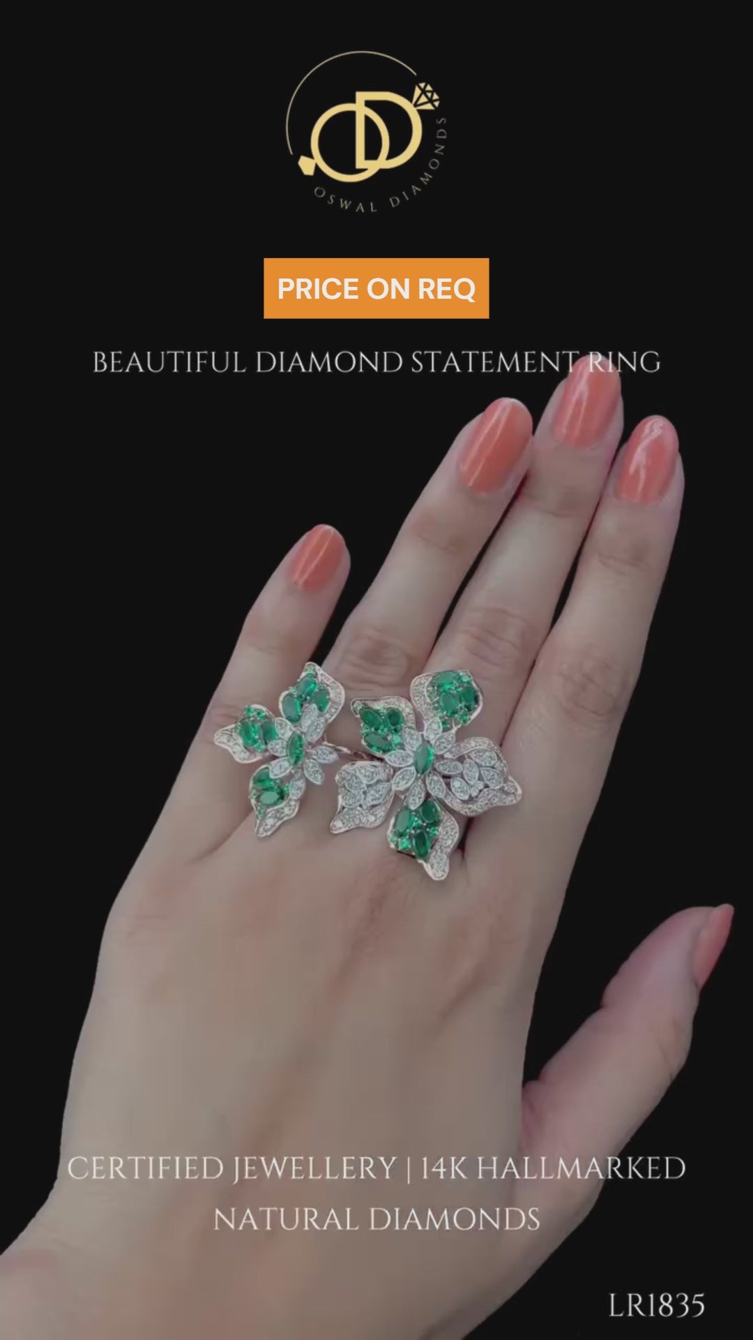 𝗧𝗵𝗶𝘀 𝗯𝗿𝗲𝗮𝘁𝗵𝘁𝗮𝗸𝗶𝗻𝗴 𝘀𝘁𝗮𝘁𝗲𝗺𝗲𝗻𝘁 𝗿𝗶𝗻𝗴 𝗶𝘀 𝗺𝗮𝘀𝘁𝗲𝗿𝗳𝘂𝗹𝗹𝘆 𝗰𝗿𝗮𝗳𝘁𝗲𝗱 𝗶𝗻 𝟭𝟰𝗞 𝗿𝗼𝘀𝗲 𝗴𝗼𝗹𝗱, 𝗱𝗲𝘀𝗶𝗴𝗻𝗲𝗱 𝘁𝗼 𝗰𝗮𝗽𝘁𝘂𝗿𝗲 𝗲𝗹𝗲𝗴𝗮𝗻𝗰𝗲 𝘁𝗵𝗿𝗼𝘂𝗴𝗵 𝗮 𝘀𝘁𝗿𝗶𝗸𝗶𝗻𝗴 𝗳𝗹𝗼𝗿𝗮𝗹 𝘀𝗶𝗹𝗵𝗼𝘂𝗲𝘁𝘁𝗲. 𝗦𝗵𝗼𝘄𝗰𝗮𝘀𝗶𝗻𝗴 𝗮 𝗵𝗮𝗿𝗺𝗼𝗻𝗶𝗼𝘂𝘀 𝗯𝗹𝗲𝗻𝗱 𝗼𝗳 𝗯𝗿𝗶𝗹𝗹𝗶𝗮𝗻𝗰𝗲 𝗮𝗻𝗱 𝗰𝗼𝗹𝗼𝗿, 𝘁𝗵𝗲 𝗿𝗶𝗻𝗴 𝗳𝗲𝗮𝘁𝘂𝗿𝗲𝘀 𝘃𝗶𝗯𝗿𝗮𝗻𝘁 𝗴𝗿𝗲𝗲𝗻 𝗰𝗼𝗹𝗼𝗿 𝘀𝘁𝗼𝗻𝗲𝘀 𝘁𝗼𝘁𝗮𝗹𝗶𝗻𝗴 𝟯.𝟮𝟬 𝗰𝗮𝗿𝗮𝘁𝘀, 𝗯𝗲𝗮𝘂𝘁𝗶𝗳𝘂𝗹𝗹𝘆 𝗮𝗿𝗿𝗮𝗻𝗴𝗲𝗱 𝘁𝗼 𝗳𝗼𝗿𝗺 𝗮𝗻 𝗮𝗿𝘁𝗶𝘀𝘁𝗶𝗰, 𝗻𝗮𝘁𝘂𝗿𝗲-𝗶𝗻𝘀𝗽𝗶𝗿𝗲𝗱 𝗱𝗲𝘀𝗶𝗴𝗻.